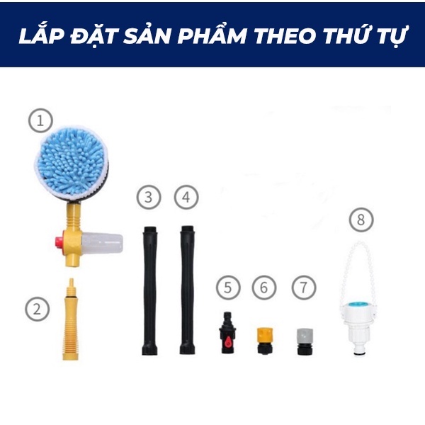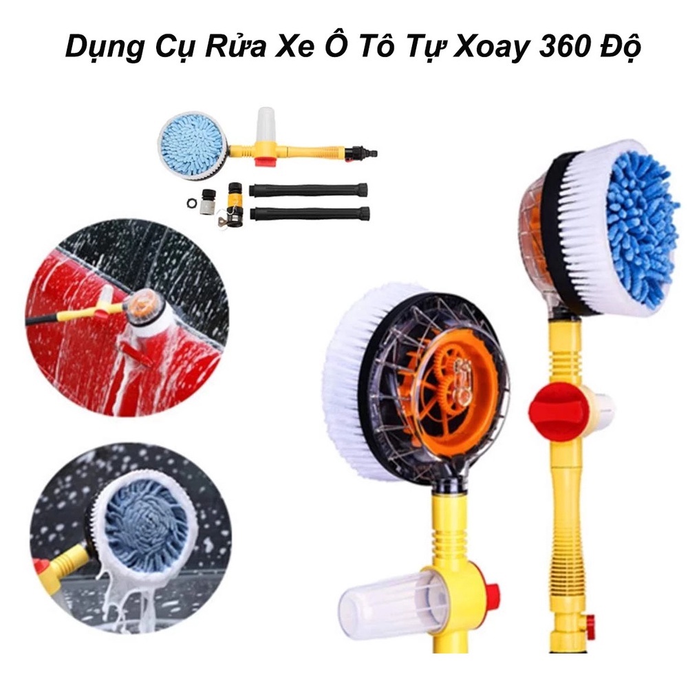 Cây Rửa Xe Hơi Kết Hợp Bàn Chải Tự Động, Xoay Tròn 360, Tự Tạo Bọt là một sản phẩm mới lạ và tiện lợi, được thiết kế dành riêng cho việc rửa xe ô tô. Cây Rửa Xe Hơi có thể kết nối với vòi nước thông thường, và có thể điều chỉnh được áp lực nước theo ý muốn.