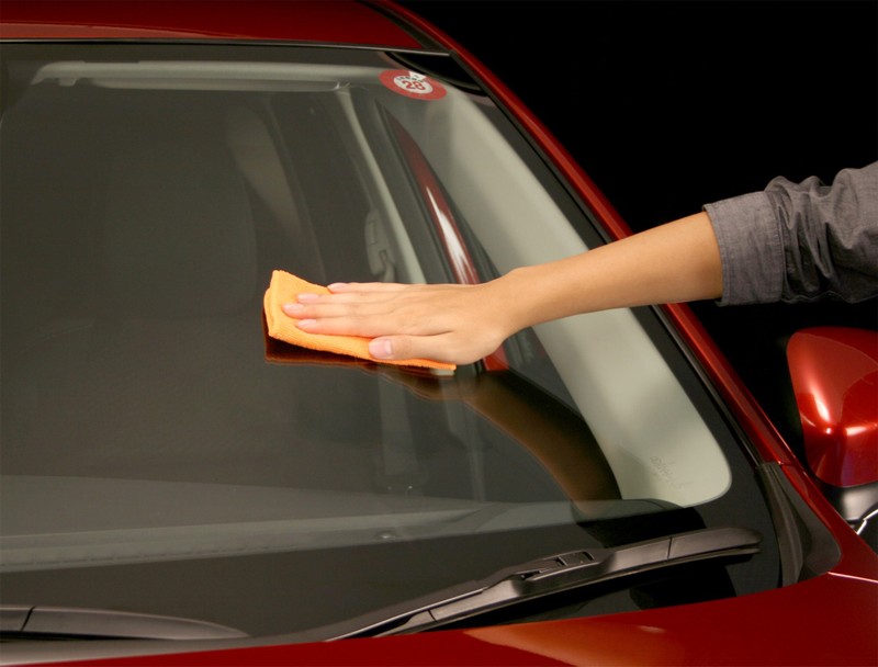 Dùng khăn lau trên kính xe