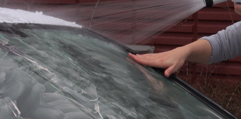 Bước 4: Đợi 5 – 10 phút cho bọt khô lại rồi rửa sạch kính bằng nước